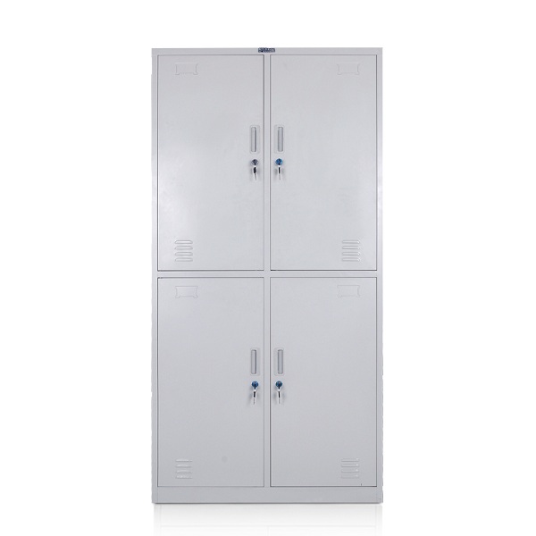 The four door locker is completely degreased and purified with purified water. The process of phosphating, degreasing, surface treatment and drying makes the product have stronger rust resistance and longer service life. Large scale sheet metal equipment, composite mold, special tool clamp, product processing does not fall. One time cutting parts, high precision. It is highly versatile. The welding part is made of high standard welding, with smooth and flat surface and automatic spraying line. The surface electrostatic powder spraying (manual and automatic line spraying, uniform coating, strong adhesion) adopts the international brand Aksu powder conforming to the EU ROHS standard. Make the product truly environmentally friendly and non-toxic.