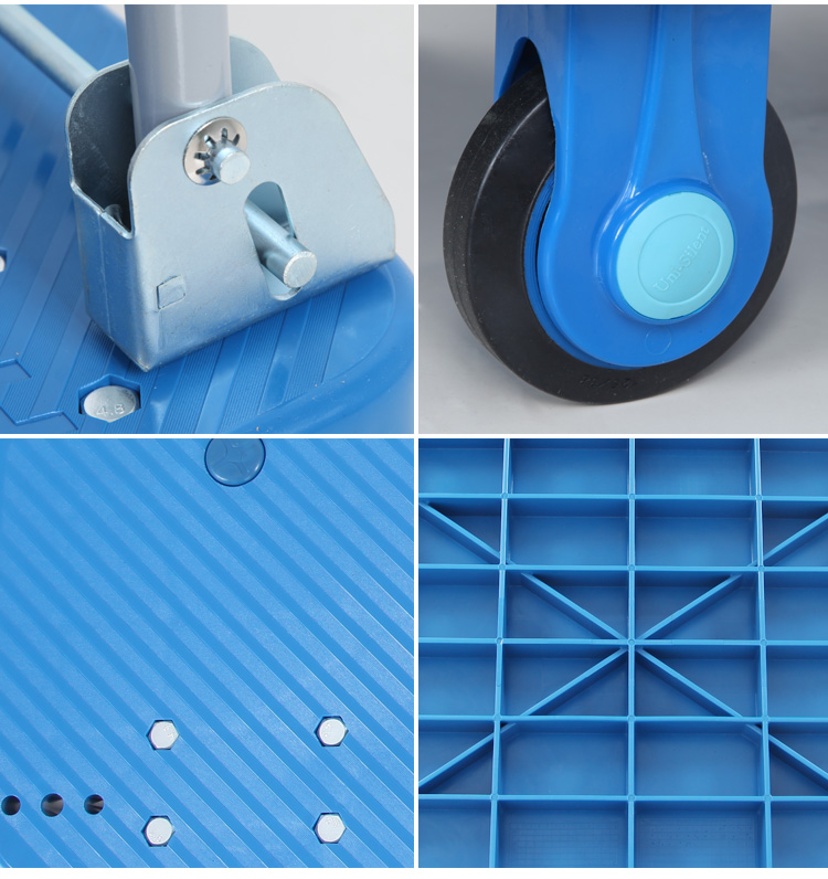 Carts of different purposes have different body structures. Most universal trolleys have loading platforms. Special trolleys are of various structures, some of which are made of box like bodies, suitable for carrying light weight and convenient loading and unloading items; some of the bodies extend out of the supports to facilitate the placement of rods, shafts, pipes and other parts; some of the body shapes are fully matched with the goods, such as gas cylinder cars; some are small, foldable and portable; in order to facilitate the loading and unloading of barrel like goods, such as barreled liquid and paper roll, The car body is provided with two flat plates forming a low inclined plane to facilitate the rolling up and down of the barrel shaped goods, such as the barrel shaped goods loading and unloading vehicle. Modern handicrafts are equipped with rolling bearings and wheels are made of solid tires or pneumatic tires.