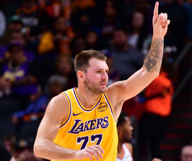 湖人:詹姆斯缺席,東契奇復出4記三分25分7籃板4助攻5失誤,里夫斯25分4籃板,艾頓10分13籃板3蓋帽,斯馬特首秀0分,布朗尼7分。