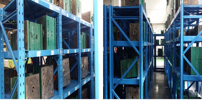 模具貨架也稱為模具架或抽屜架。它們主要用于存放各種模具。根據(jù)層負(fù)荷要求,它們可分為輕型模架和重型模架。貨架頂部可配備移動式提升機(jī),方便提升模具。輕型模架采用100#槽鋼作為專用柱,柱采用優(yōu)質(zhì)Q235帶鋼軋機(jī)。模架抽屜托盤結(jié)構(gòu)通常用矩形管和4.0彎曲件焊接,以形成上層鋼板。引導(dǎo)槽通過彎曲4.0鋼板形成。頂部和底部通過橫梁連接,頂部覆蓋有頂板,頂板可以存放物品。