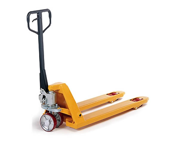 液壓車 在使用時,會將其叉插入托盤孔中。由人力驅動液壓系統完成托盤貨物的升降,人力拉動機械設備完成轉運作業。液壓車采用4mm鋼板,焊接強度可靠,無斷點;液壓車整體鑄造氣缸,氣缸下降速度不受承載影響;進口密封圈、活塞桿鍍鉻;液壓車安全閥提供過載維護,有效降低維修成本。